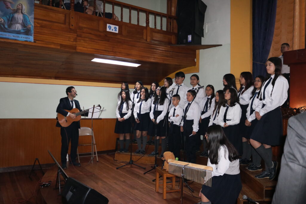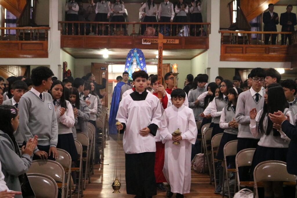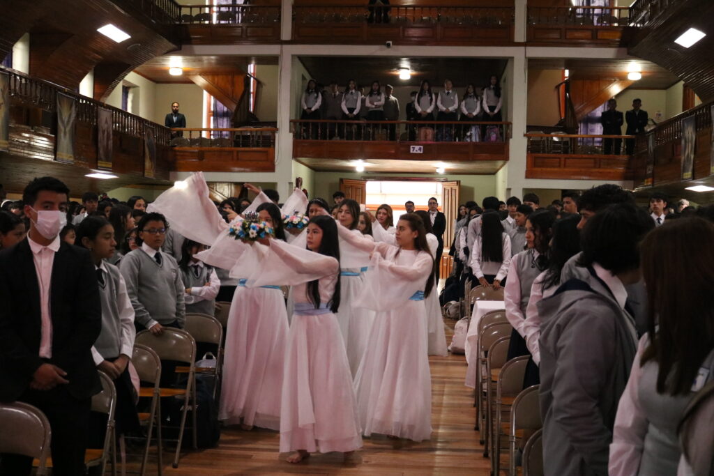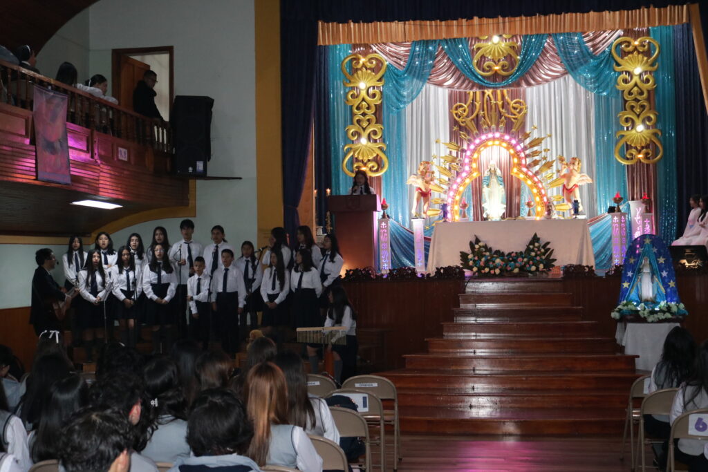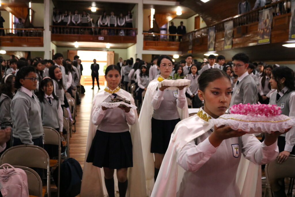 Hoy, con gran alegría, celebramos la misa solemne de consagración a la Virgen María, un acto lleno de luz, fe y gratitud. Estudiantes, docentes y familias nos reunimos para ofrecerle flores, oraciones y nuestro corazón, reconociendo en María un modelo de entrega, ternura y fortaleza.